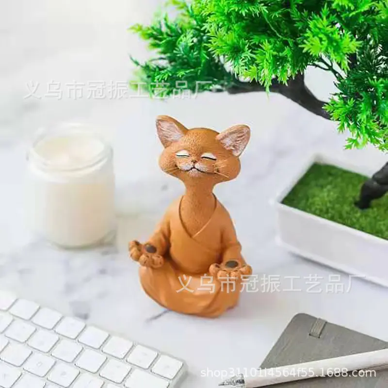 开怀大笑猫咪摆件打坐黑猫树脂摆件居家装饰摆件黑色系设计