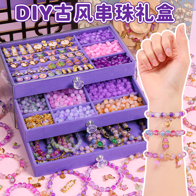 古风手链串珠礼盒女孩手工diy材料穿玩具国风手串儿童生日礼物9子