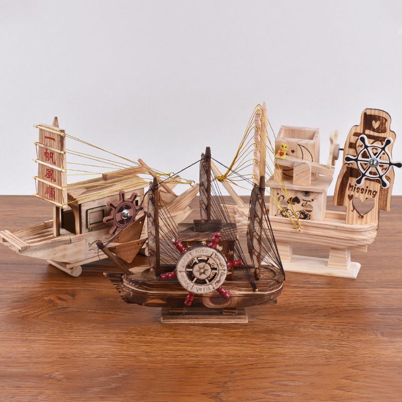 工艺品摆件竹木家居摆设军舰航母玩具模型桌面摆件海盗船木制渔船