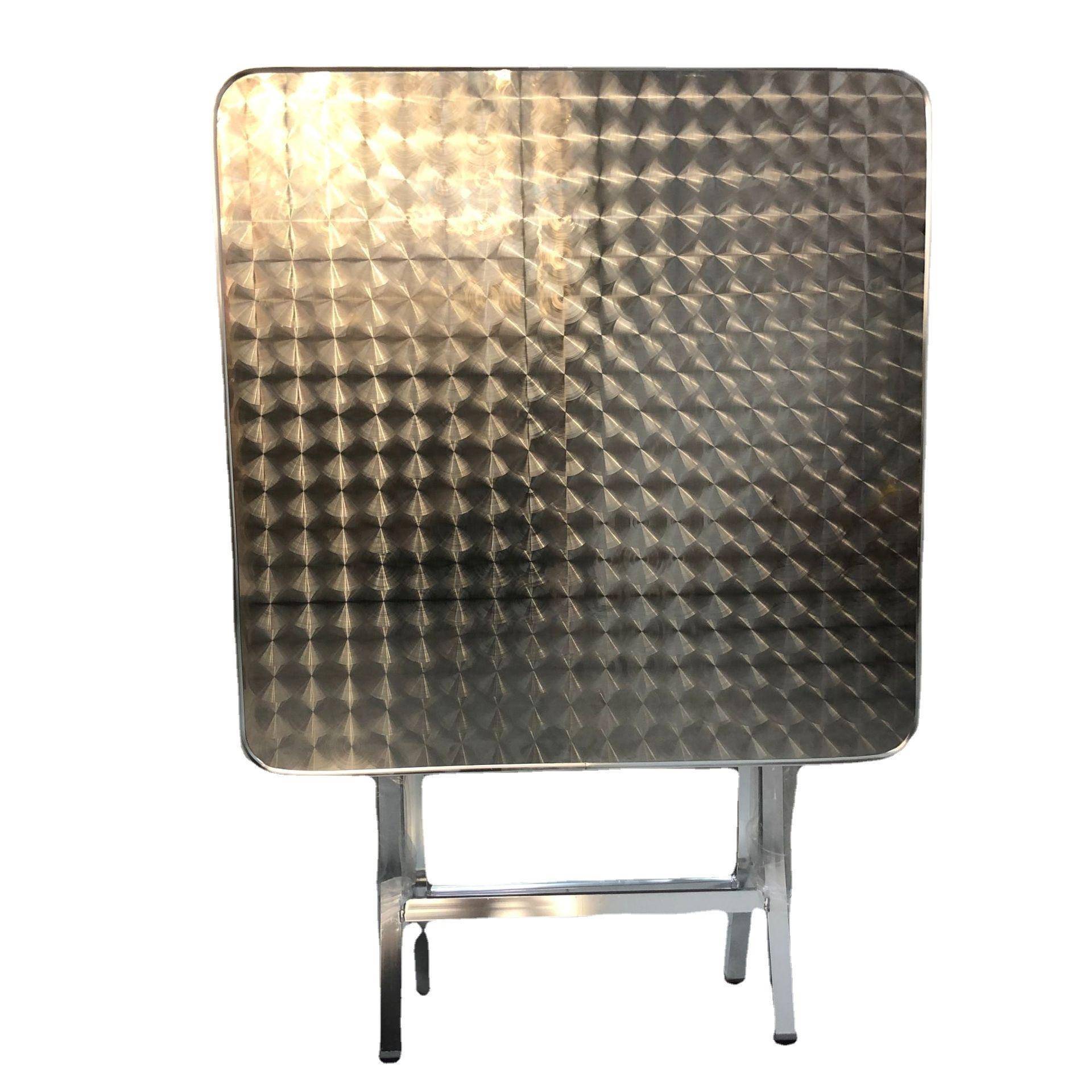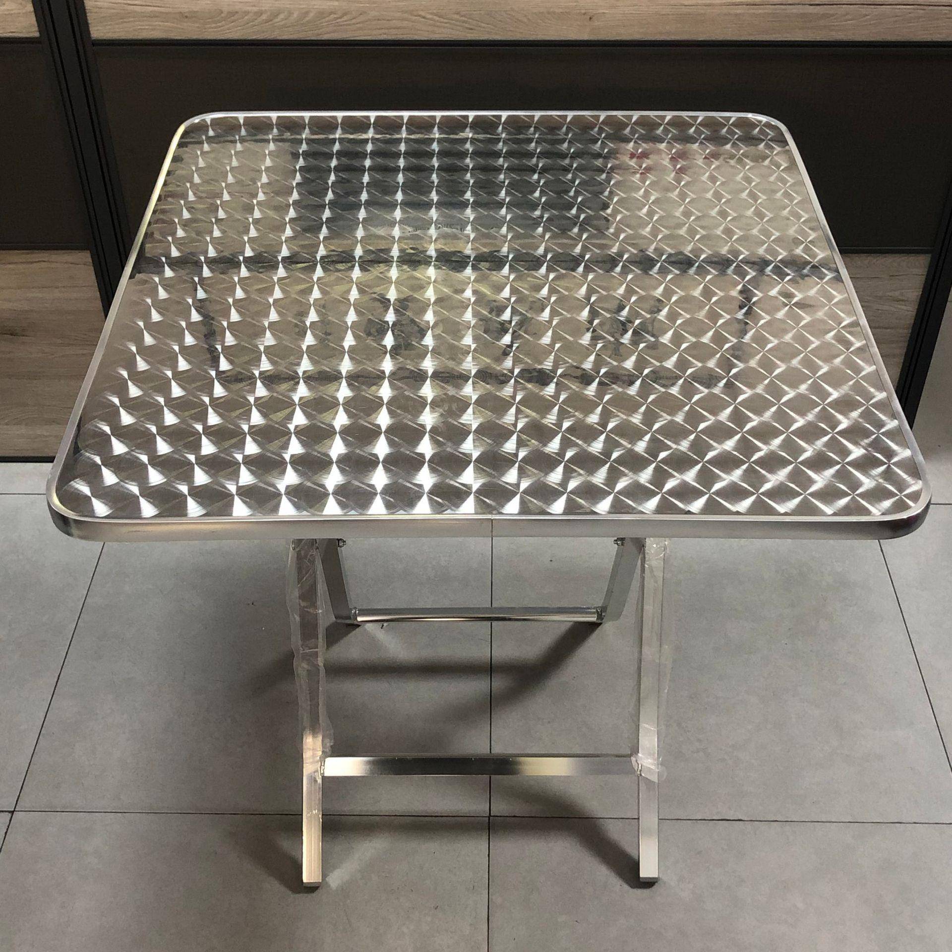 不锈钢折叠桌家用吃饭圆桌简约现代户外便携餐桌铝脚工业风小圆桌