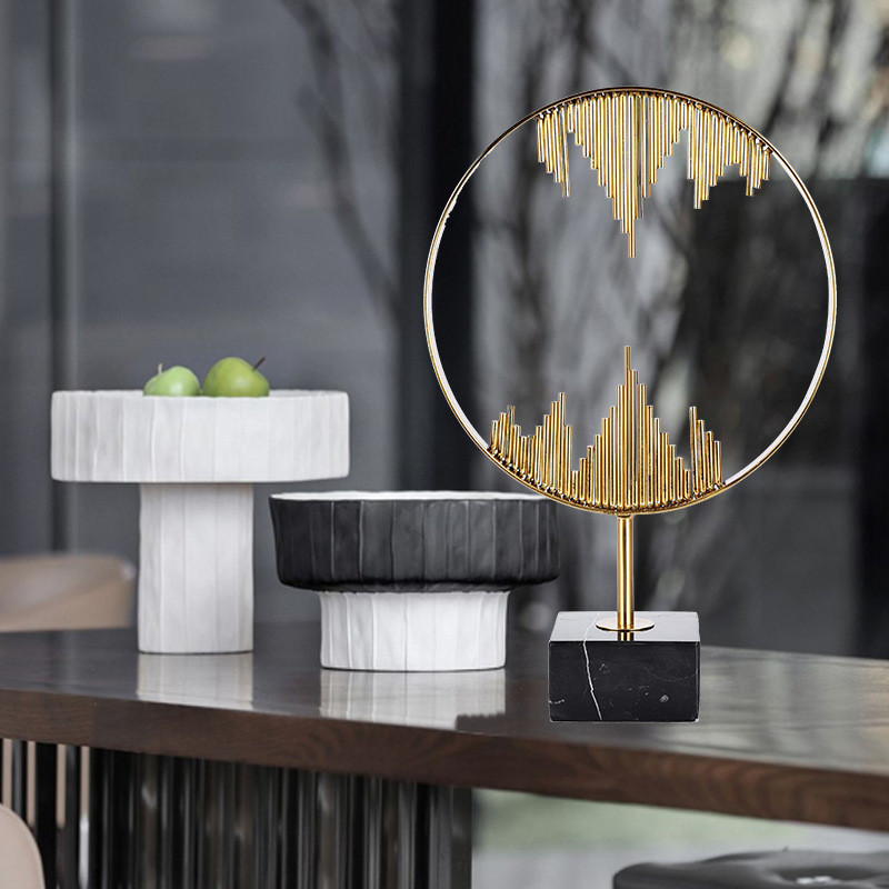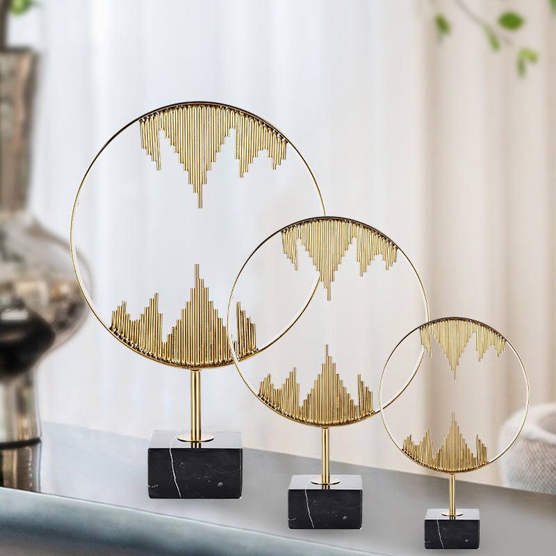 热销批发新中式软装饰品家用客厅工艺品摆件创意金属火焰金属圈摆