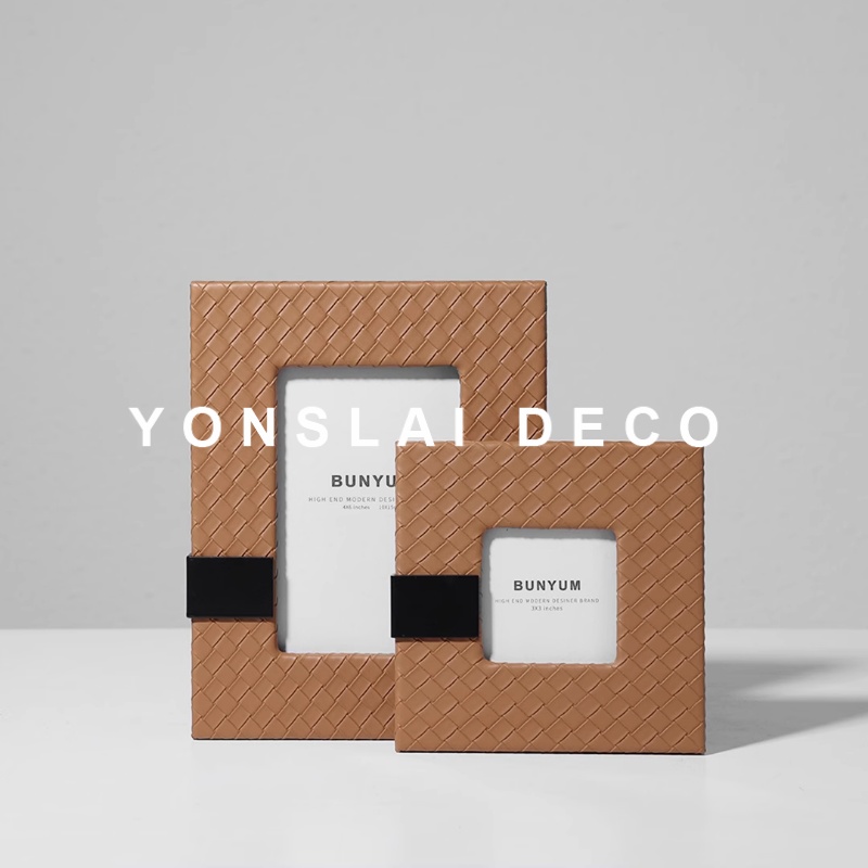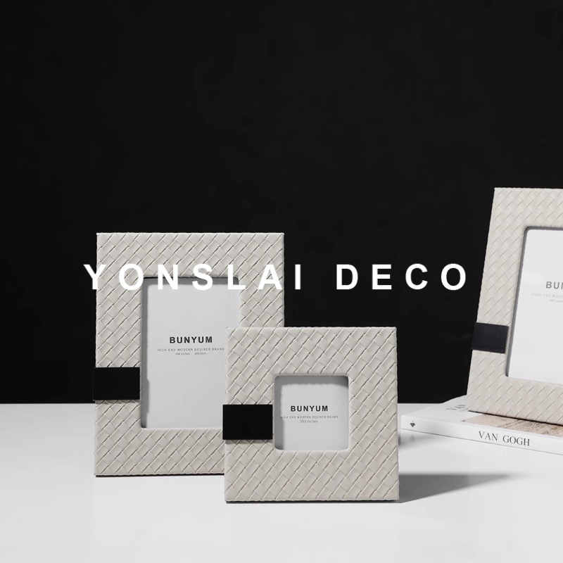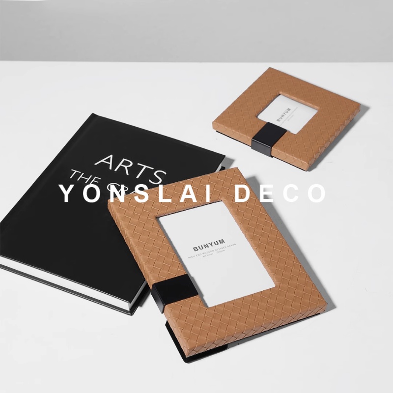 现代轻奢皮革编制照片相框摆件高档样板间家居客厅玄关卧室软装
