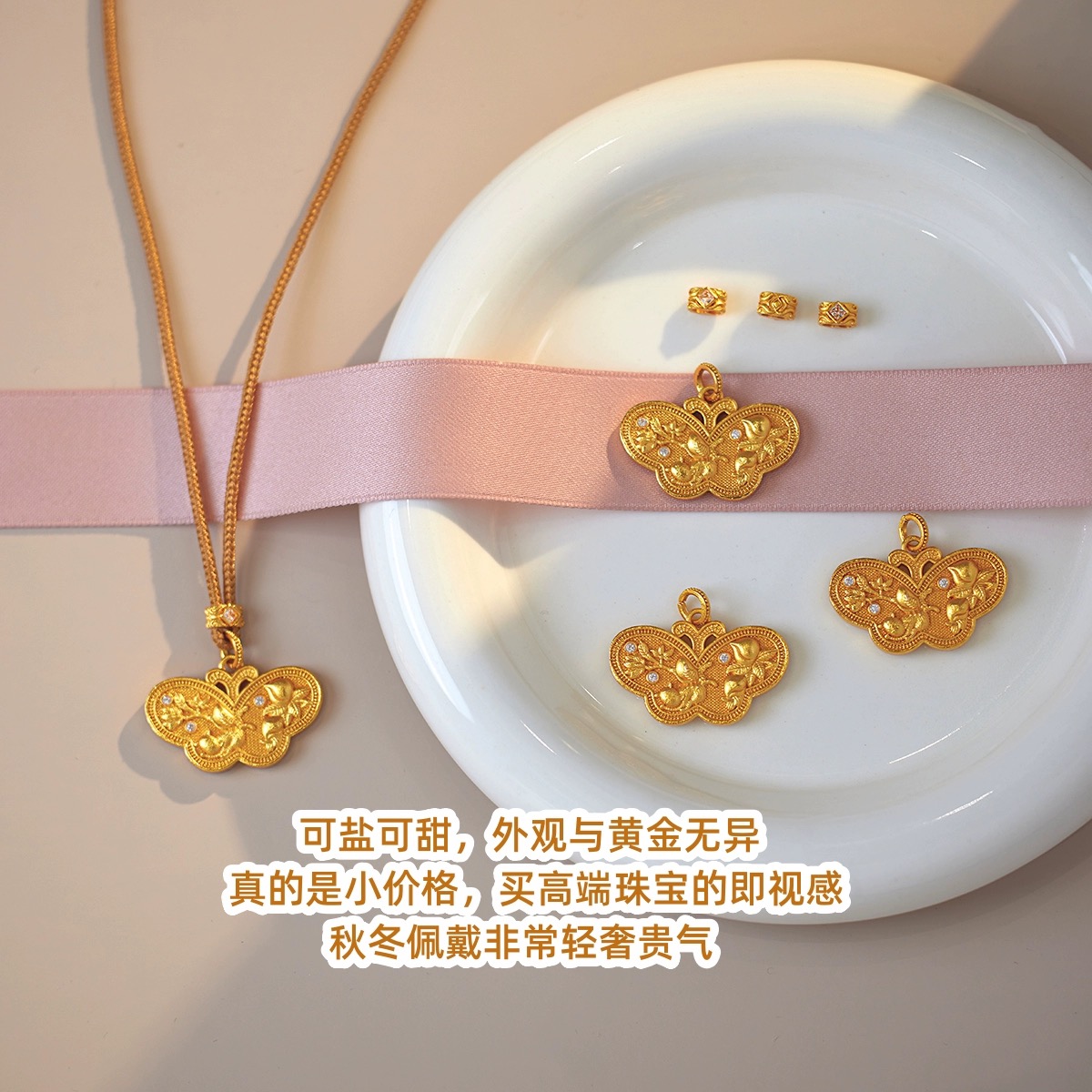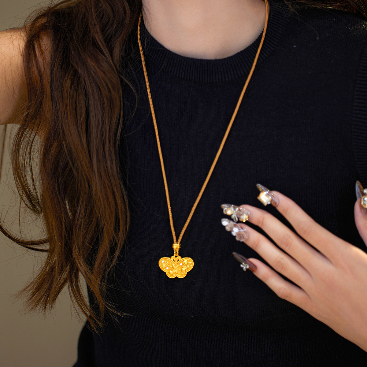 赛赛莉安双面雕刻蝴蝶结沙金编绳新中式秋冬毛衣链项链简约百搭女