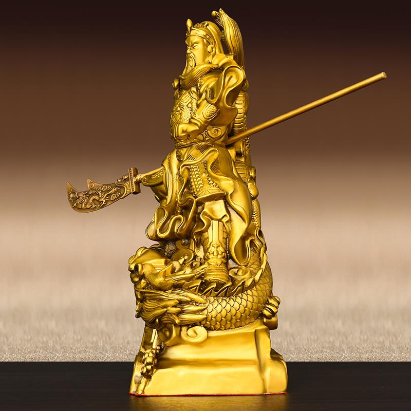 纯黄铜乘龙关公神像摆件家居客厅装饰关羽关帝圣君武财神关二爷像