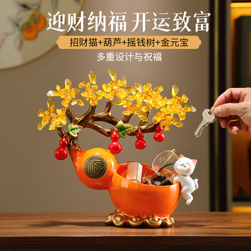 新中式葫芦招财水晶树乔迁新居入户鞋柜客厅装饰钥匙收纳玄关摆件