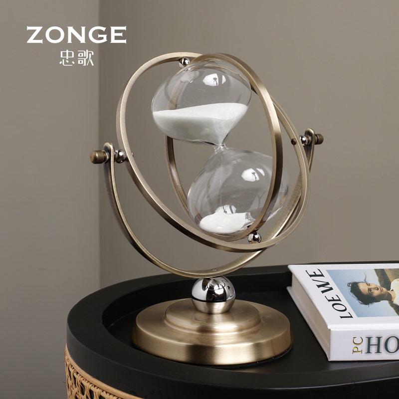 轻奢创意金属时间沙漏摆件家用办公室书房桌面计时器摆设软装饰品