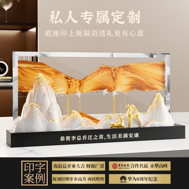 背靠金山流沙画摆件高级感客厅玄关酒柜装饰品办公室桌面轻奢礼物
