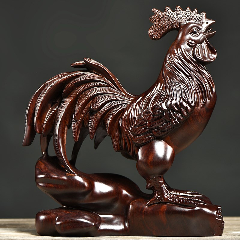 花梨木雕鸡摆件根雕大公鸡十二生肖实木质雕刻家居补角装饰工艺品