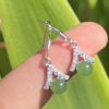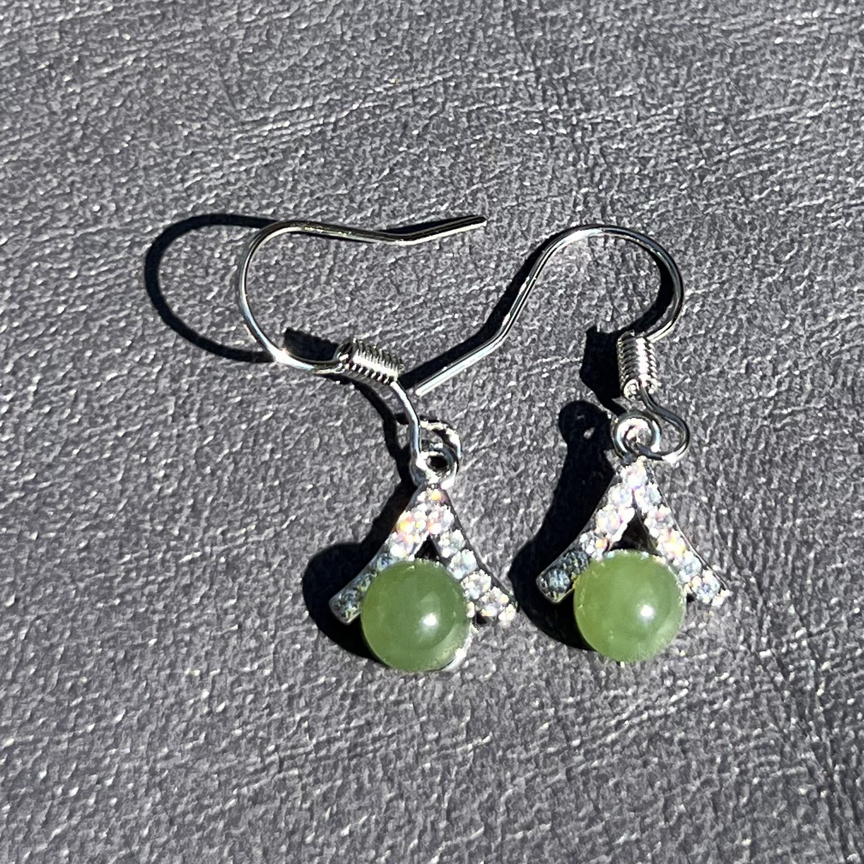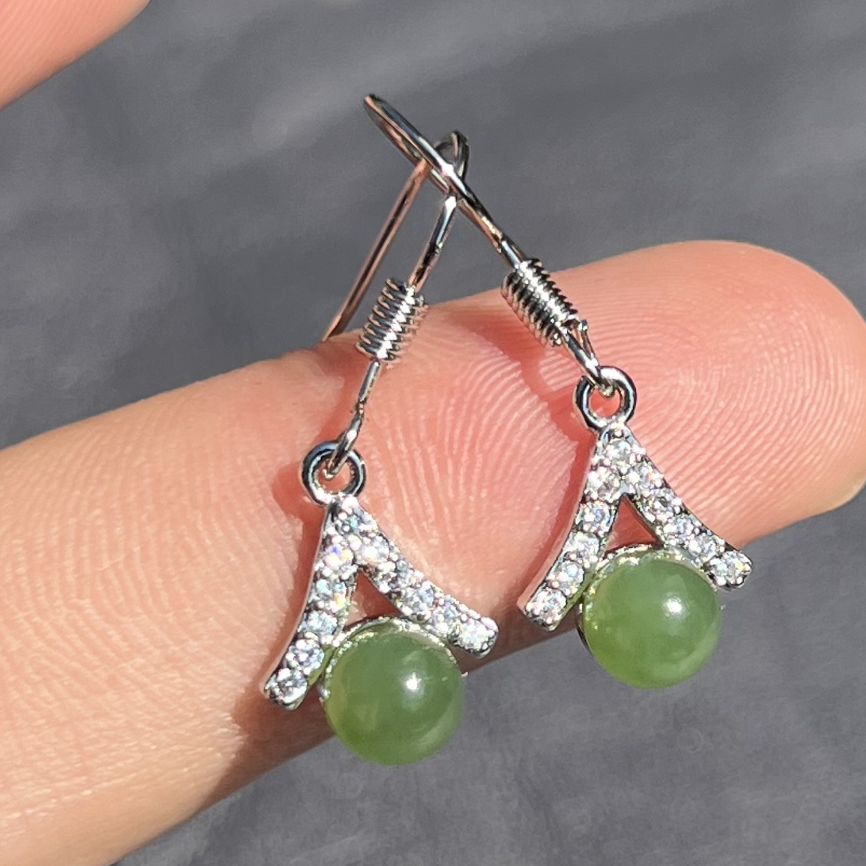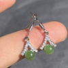 放大漏俄罗斯老坑料果绿碧玉925银耳针百搭耳钉送妈妈F