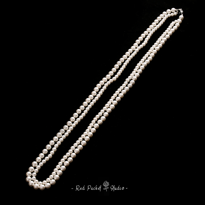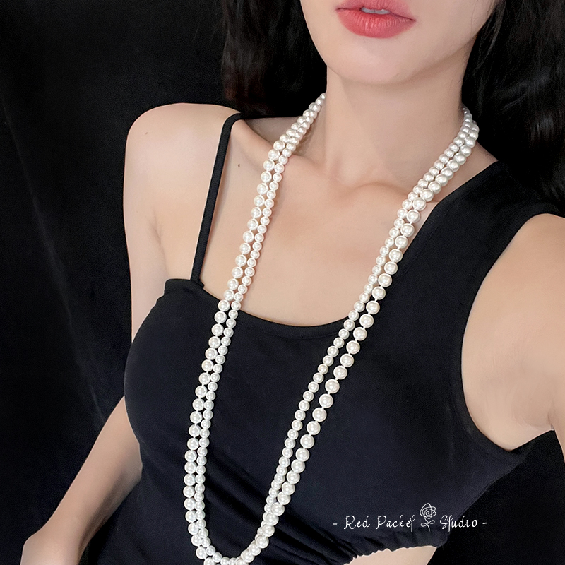 红口袋 复古法式长款优雅大气贝珠珍珠双层项链旗袍毛衣链新款配