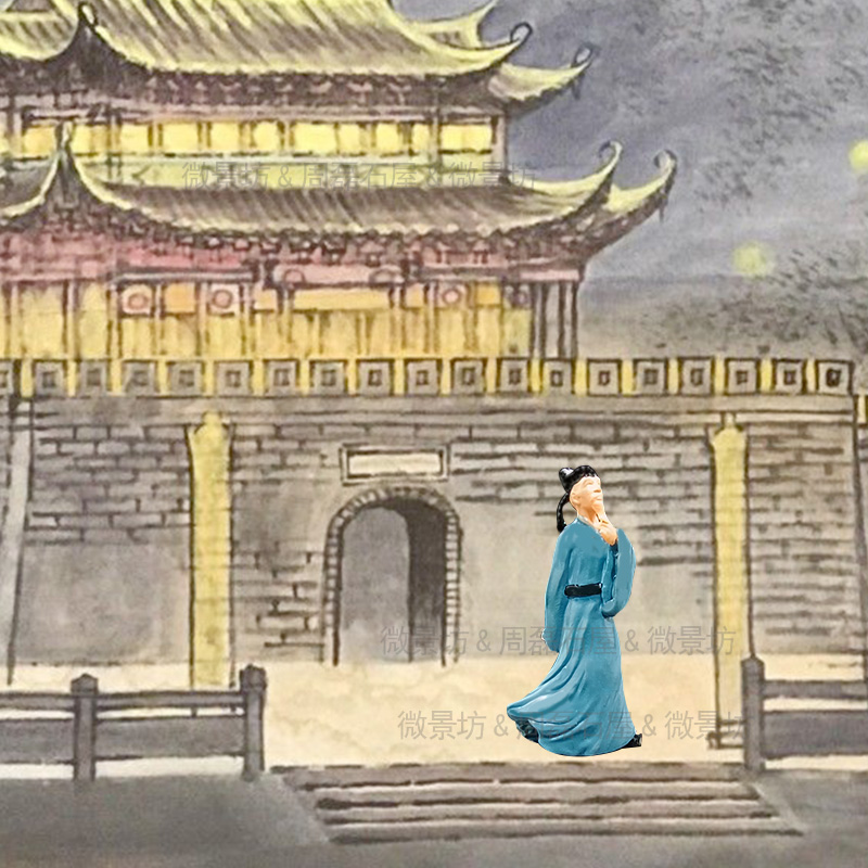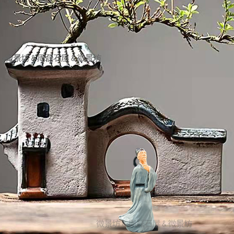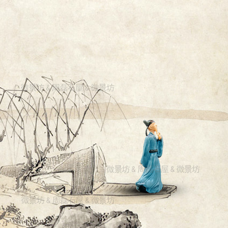 新品原创复古风人物屈原奇石假山盆景鱼缸沙盘枯山水置景树脂模型