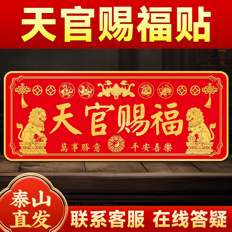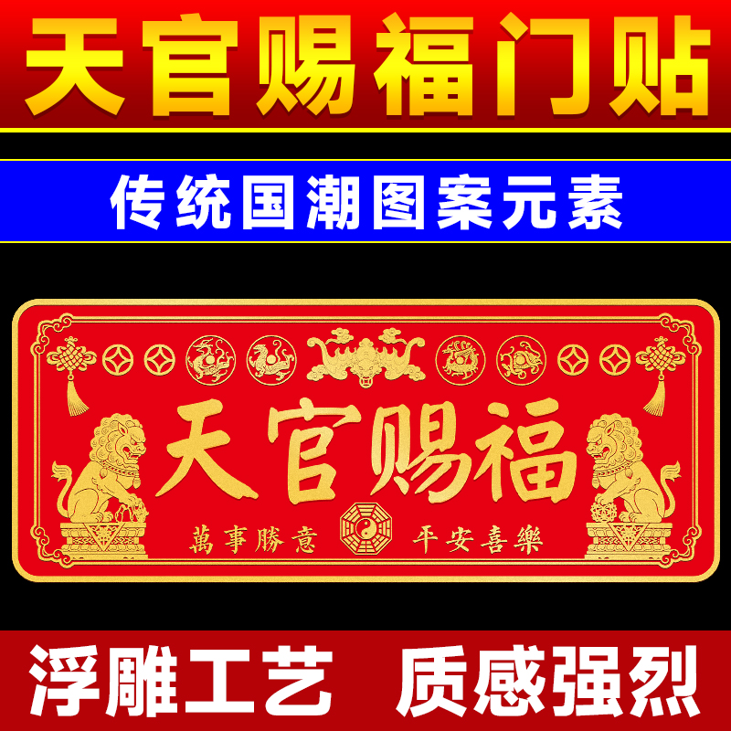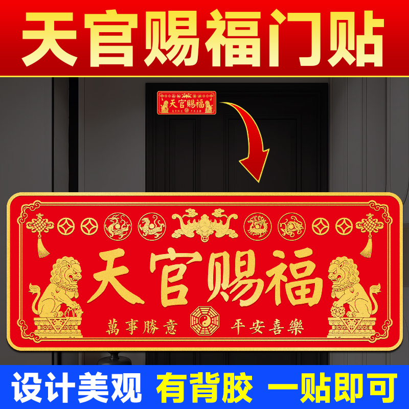 天官赐福门贴入户金属双狮新品大门牌背胶贴卧室大门对门乔迁礼物