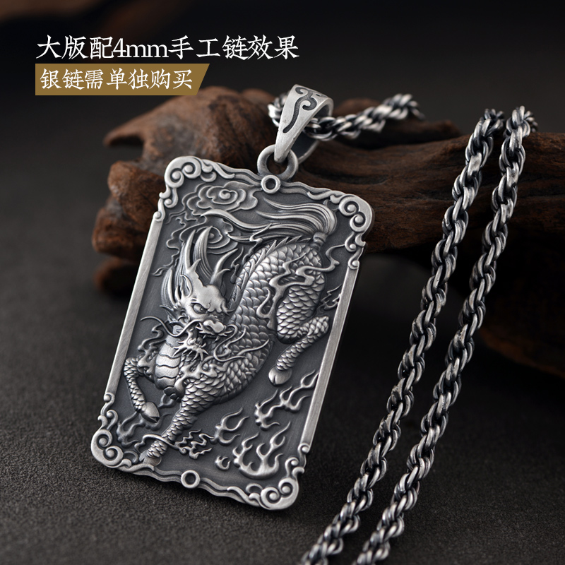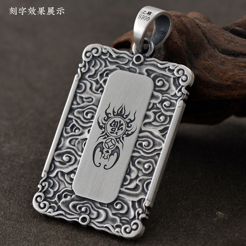 999纯银麒麟吊坠男士项链个性饰品复古挂件中国风可刻字钥匙扣