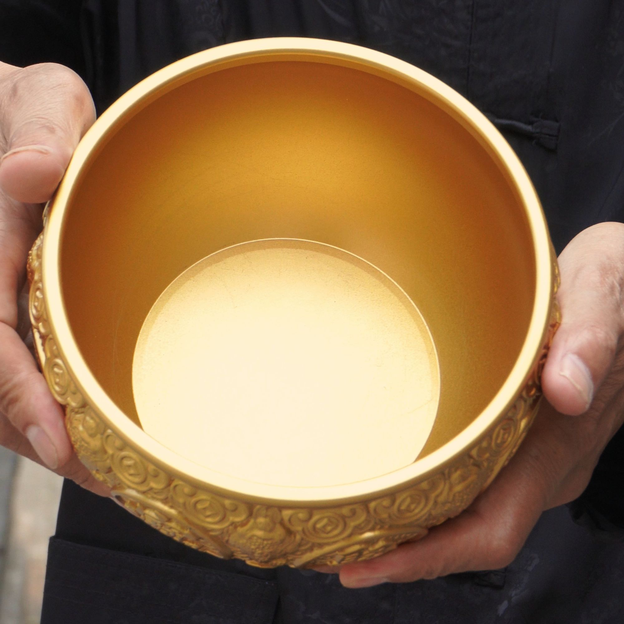 五台山大口径全套金蟾金钱聚宝盆家居办公室装饰工艺品摆件