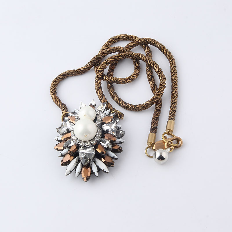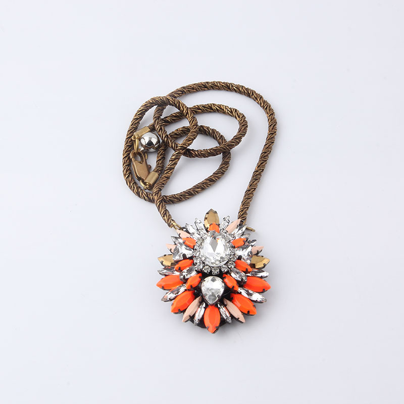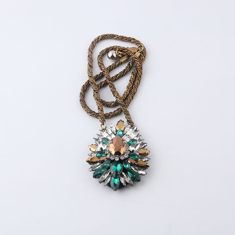 新款时尚欧美风个性夸张项链巴洛克镶钻多彩女士舞会礼物项链吊坠