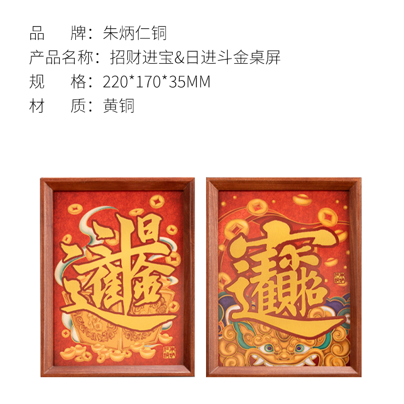 朱炳仁铜 招财进宝日进斗金桌屏桌面装饰摆台开业商务礼物生日