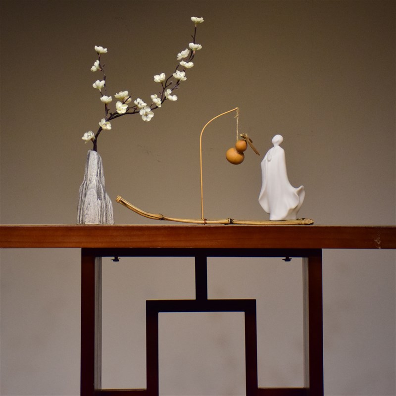 新中式竹编插花禅意人物创意z摆件办公室玄关茶室酒店家居装饰