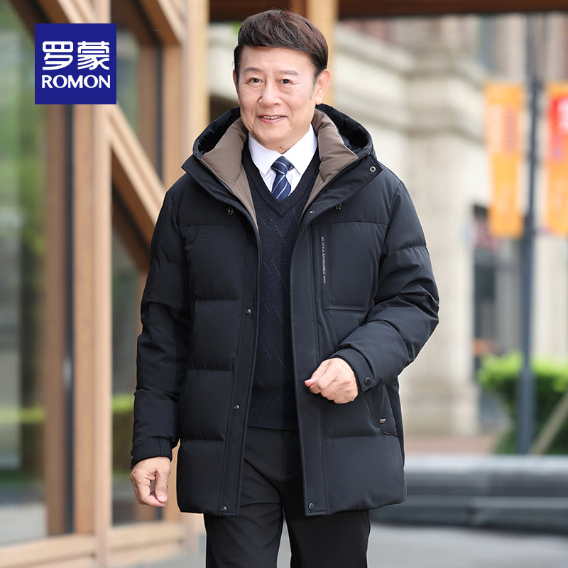 【加厚牛奶丝面料】罗蒙爸爸冬装羽绒服男士中长款中老年保暖外套