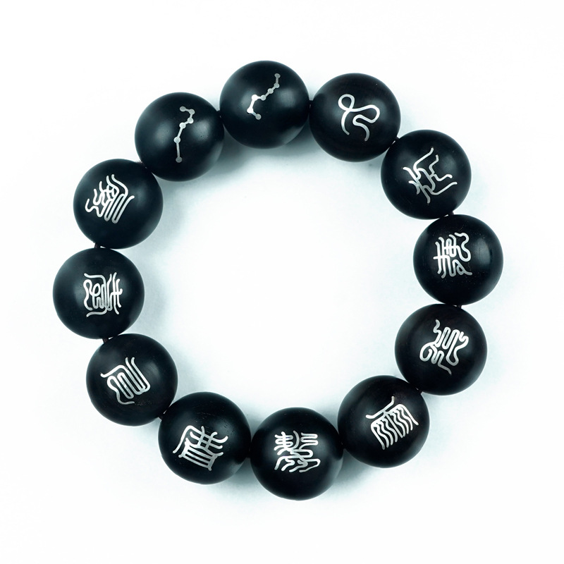 黑檀木镶银十字天经手串紫光檀嵌银金光讳南北斗八卦道家图案手链