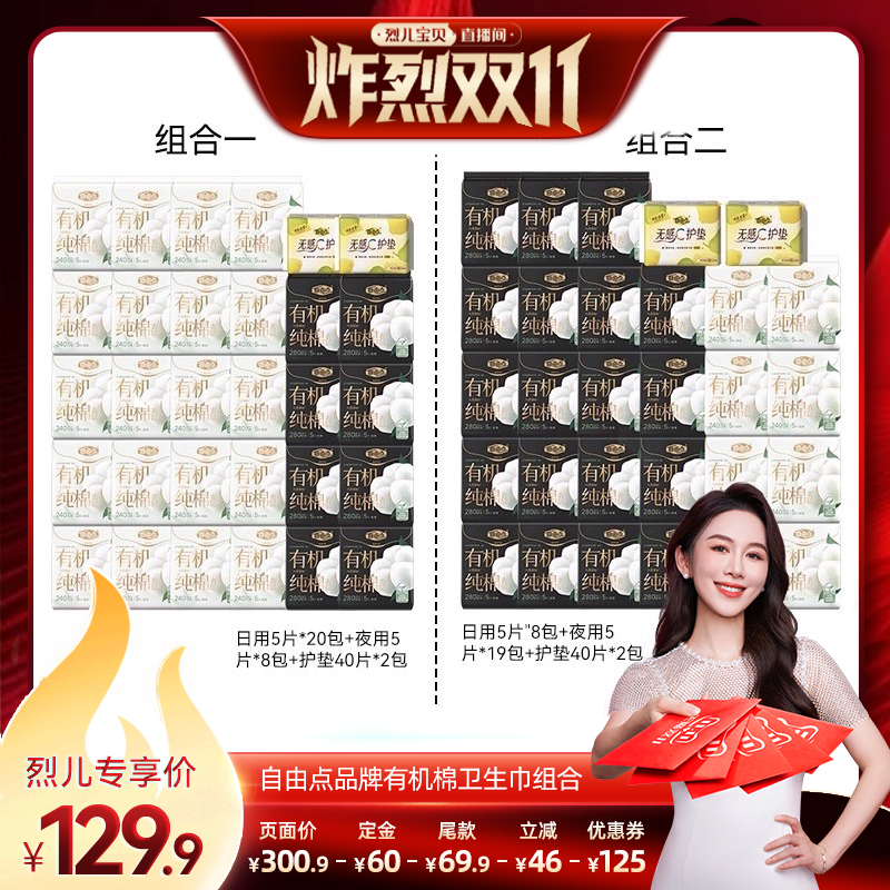 【烈儿炸烈双11】自由点新疆有机纯棉表层系列卫生巾日夜zb