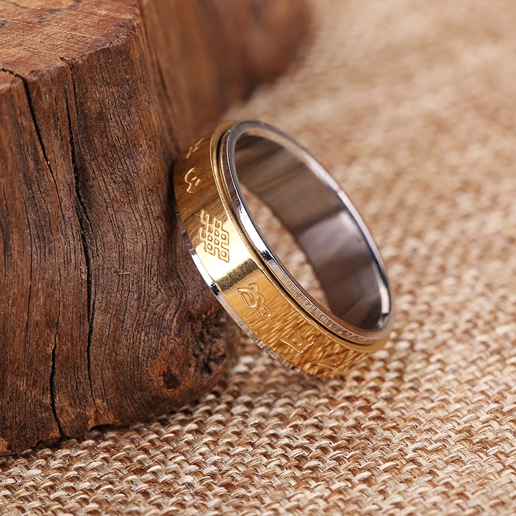 钛金梵文食指六字真言戒指大明咒心经戒子女男指环转运情侣款