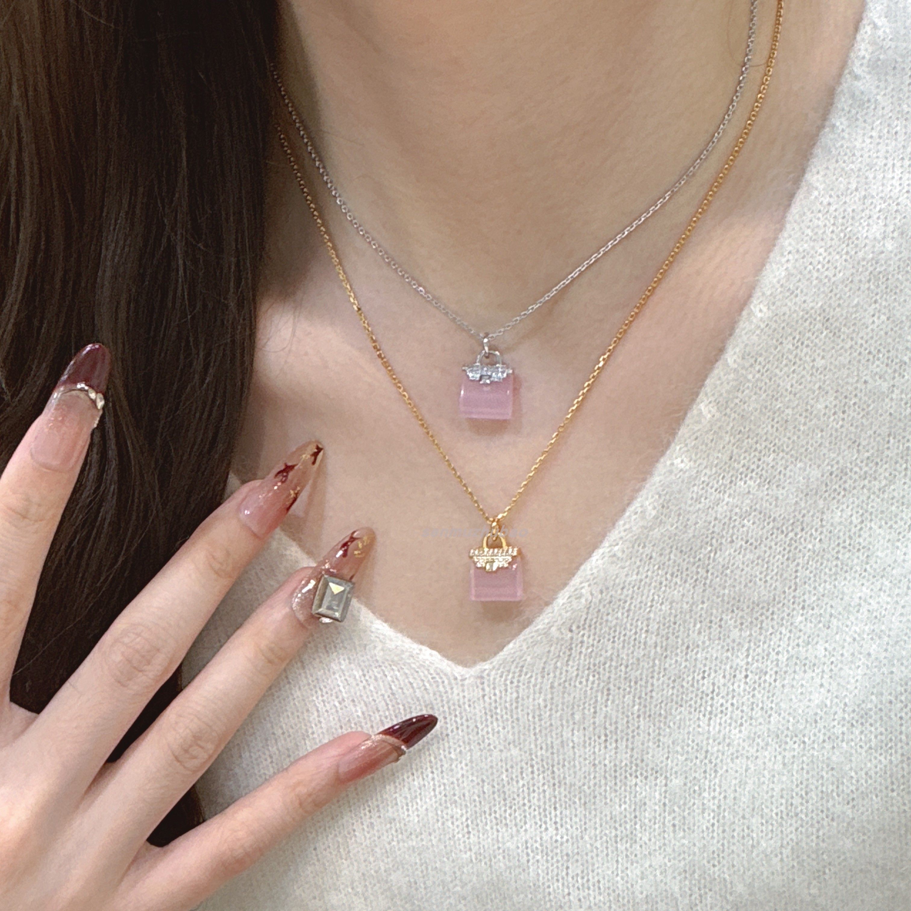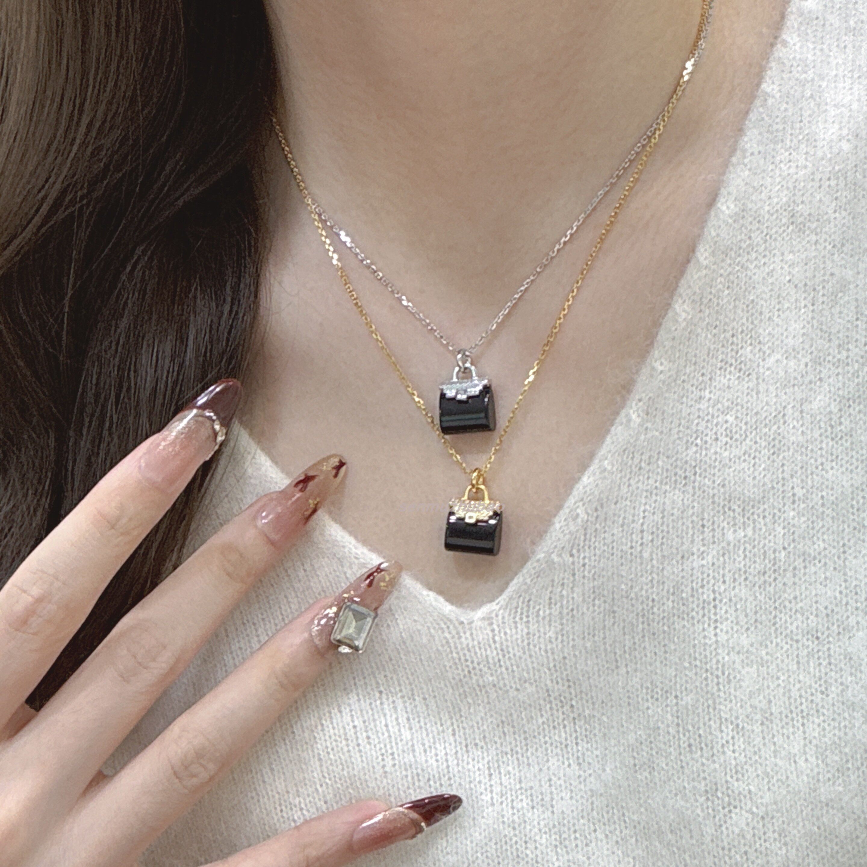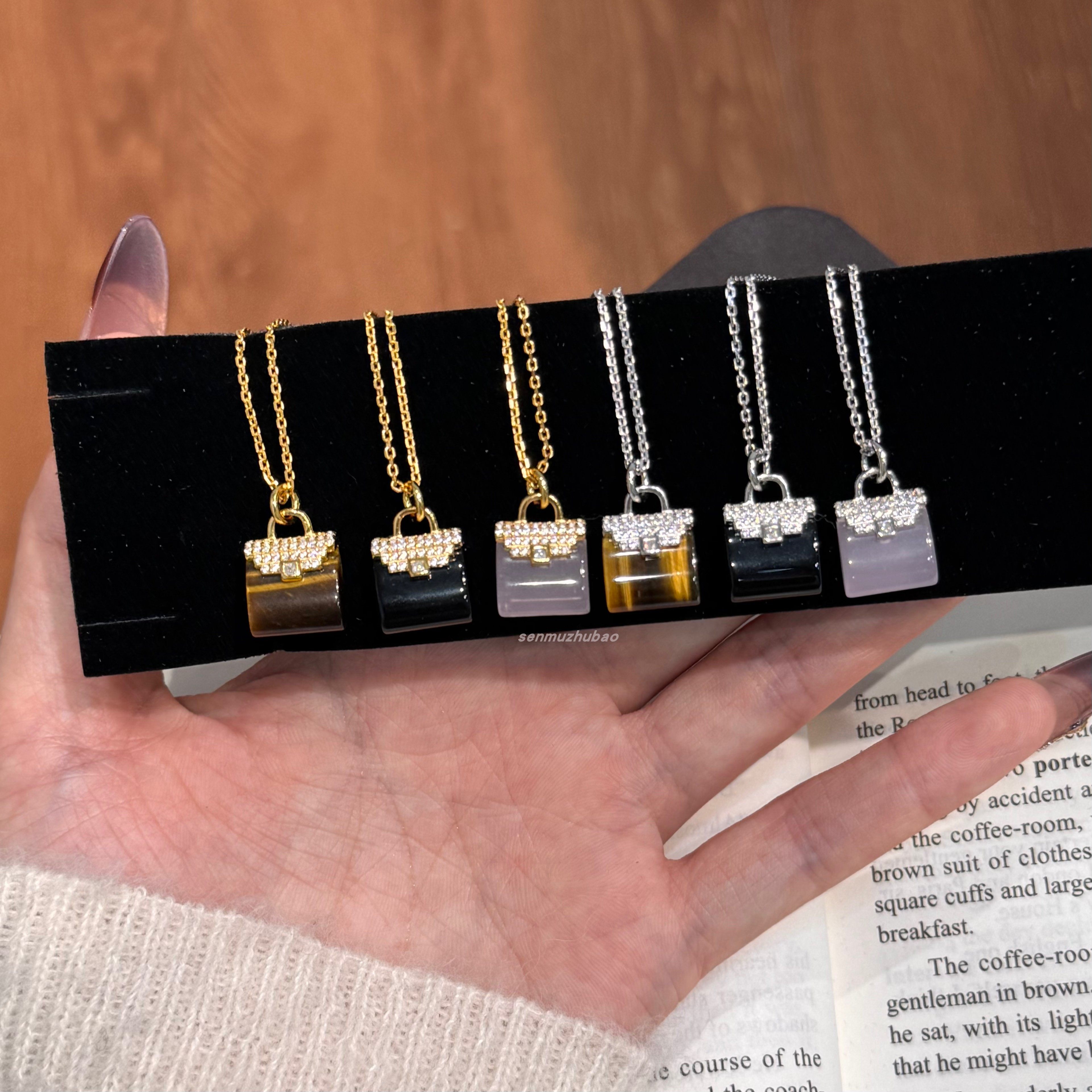 创意个性独特925银轻奢设计感包包镶钻虎眼石水晶黑玛瑙项链时尚
