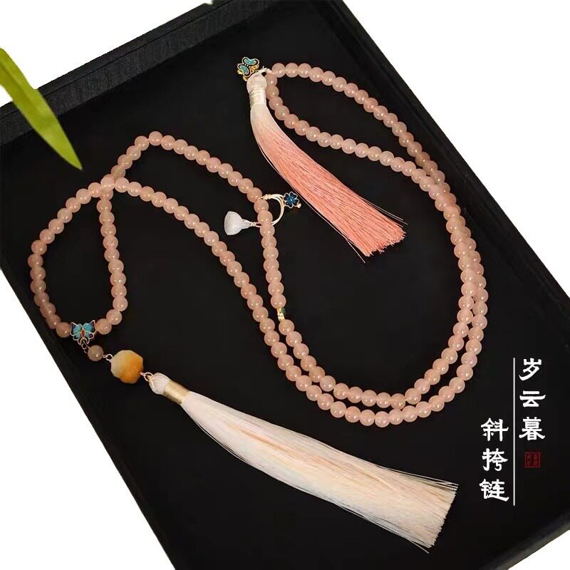 民族风斜挎链新中式珠链日常百搭装饰配饰国风项链手串念珠流苏