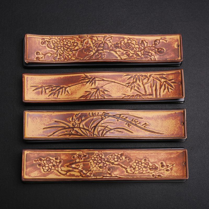 静尘跨境供应陶瓷线香炉香座创意祥云梅兰竹菊沉香线香插香炉摆件