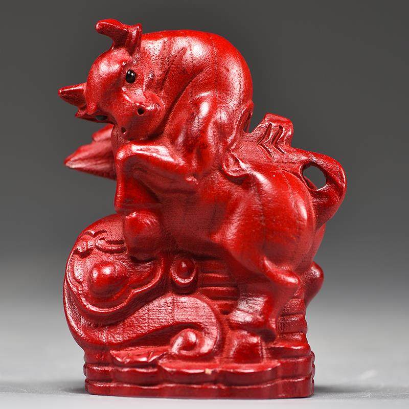 红色桃木十二生肖摆件全套实木质鼠牛虎兔龙蛇马羊猴鸡狗猪吉祥物