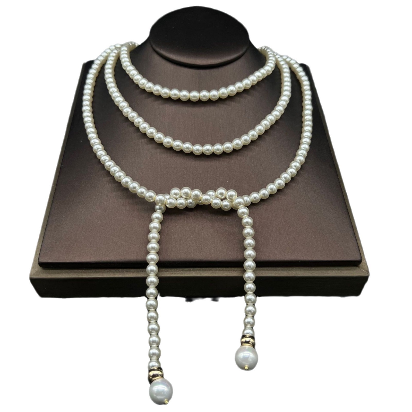 配旗袍项链珍珠多层女复古小香婚纱拍照配饰品时尚双层长款毛衣链