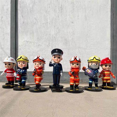 玻璃钢卡通消防员铸铜人物雕塑定制铁艺镂空剪影拍照座椅模型摆件