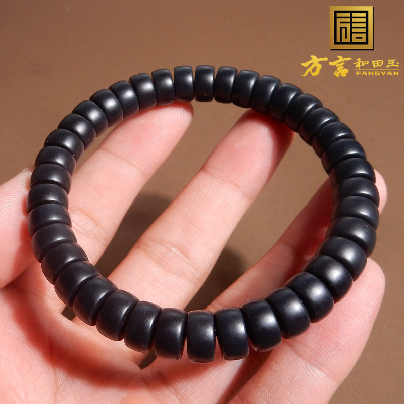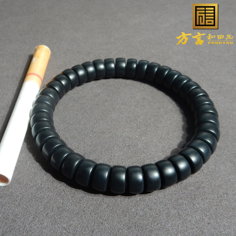 亏麻了新疆漆黑如墨墨玉籽料露白肉无结构9mm直切药片手串手链w1