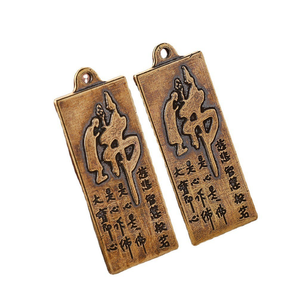 【出厂价】复古黄铜佛牌汽车钥匙扣挂件手工铜实心随身平安配饰
