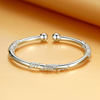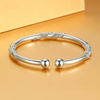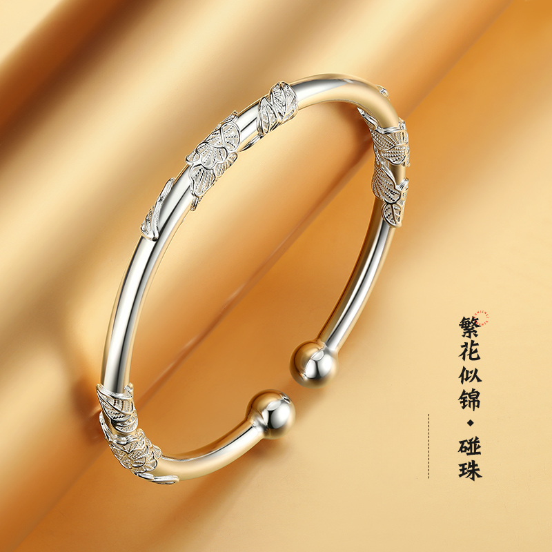 繁花似锦银手镯女9999纯银妈妈款实心推拉银镯子情人节礼物送女友