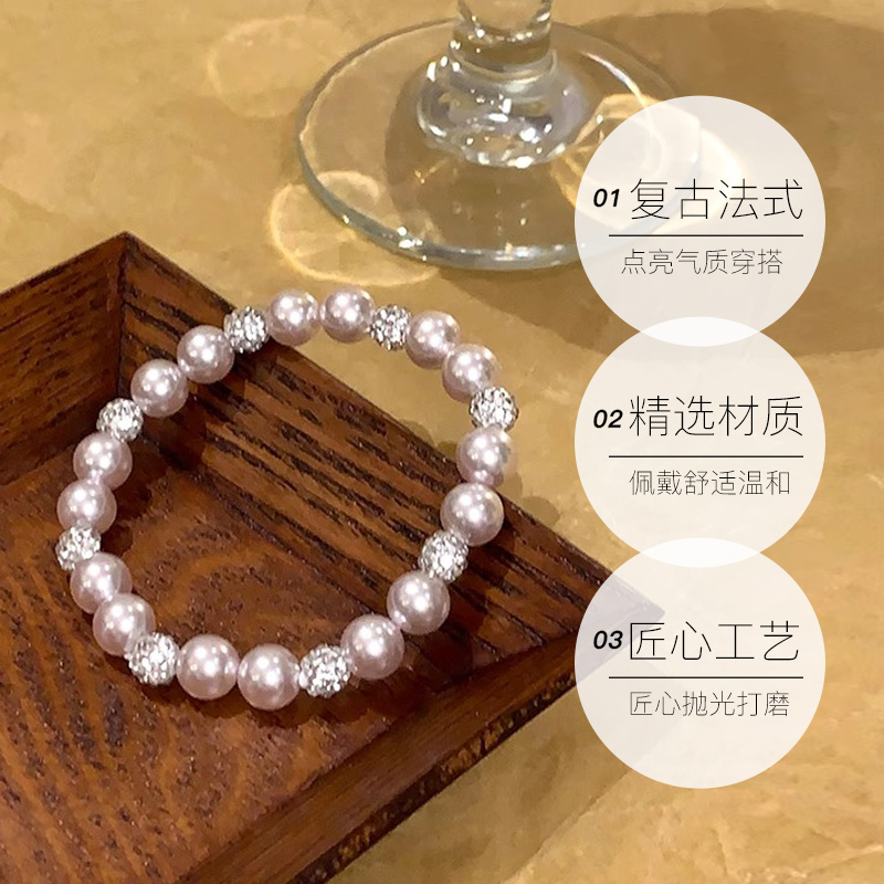 【自营】daisy beauty复古法式玫瑰紫色水晶珍珠锆石手串小众礼物
