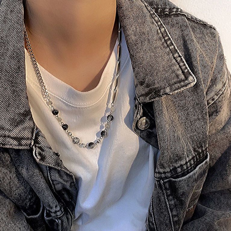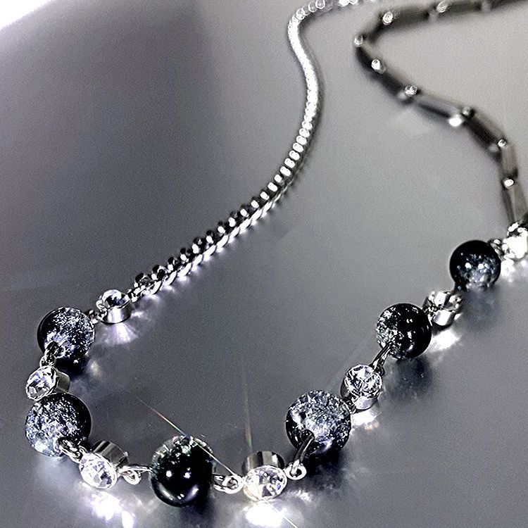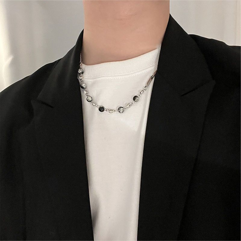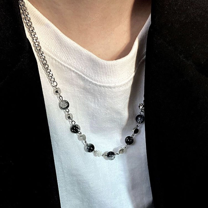 黑白冰裂珠钛钢项链男潮拼接ins嘻哈轻奢小众设计高级感痞帅配饰