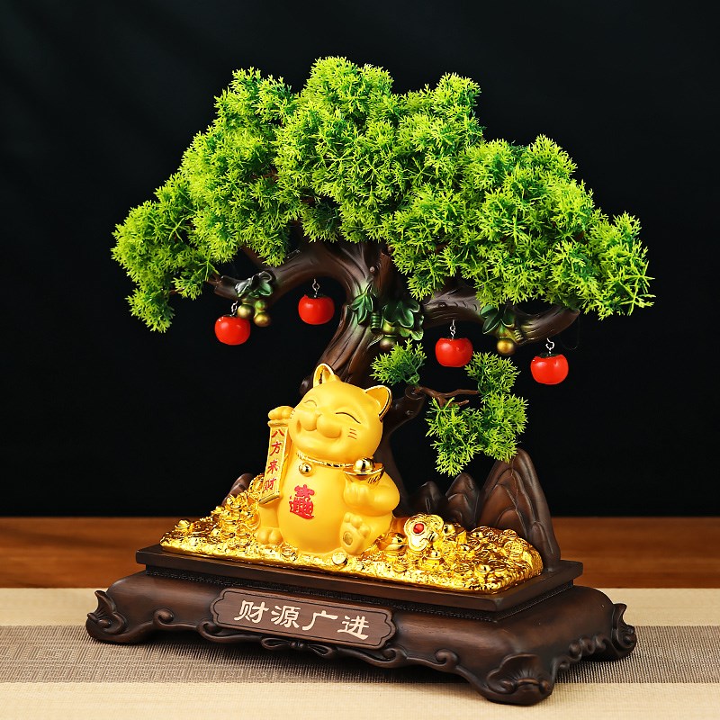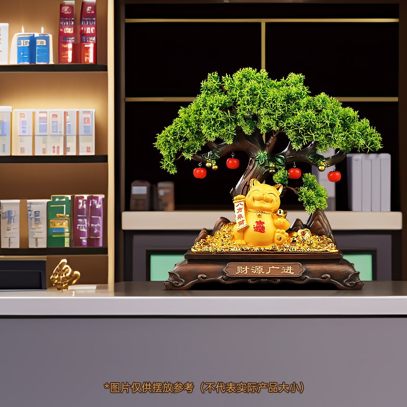 财源广进迎客松招财猫摆件客厅z酒柜收银台前台装饰品店铺开业礼