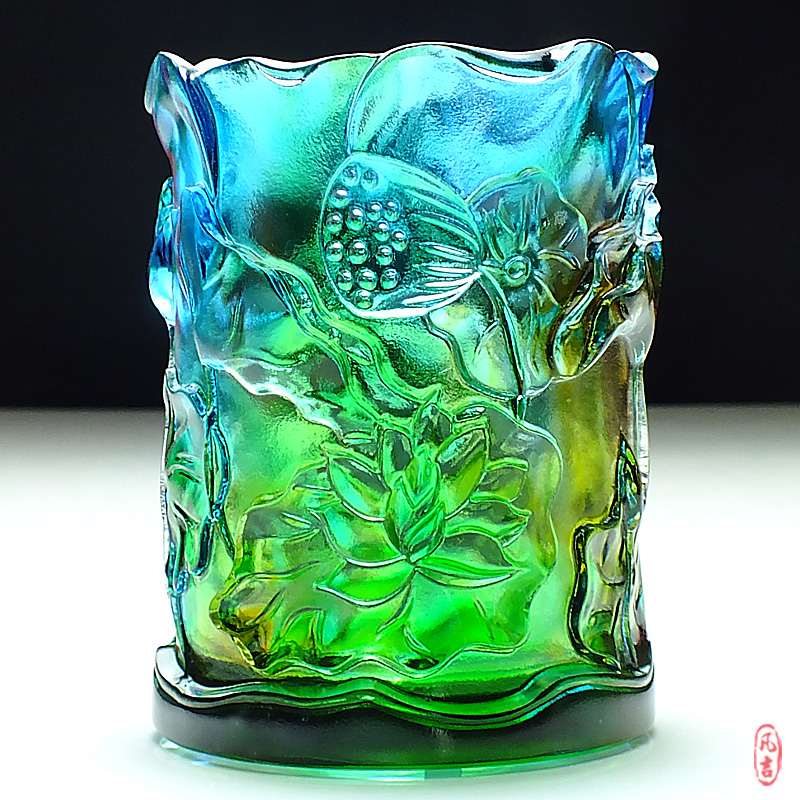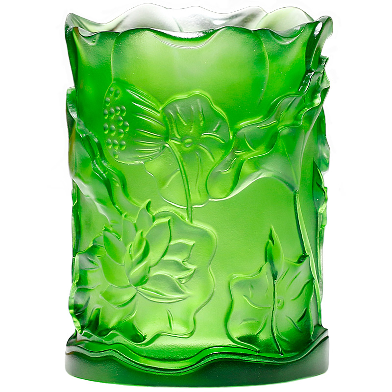 极速琉璃荷花饰品水晶笔筒摆件办公室展示柜书P桌女领导女生工艺