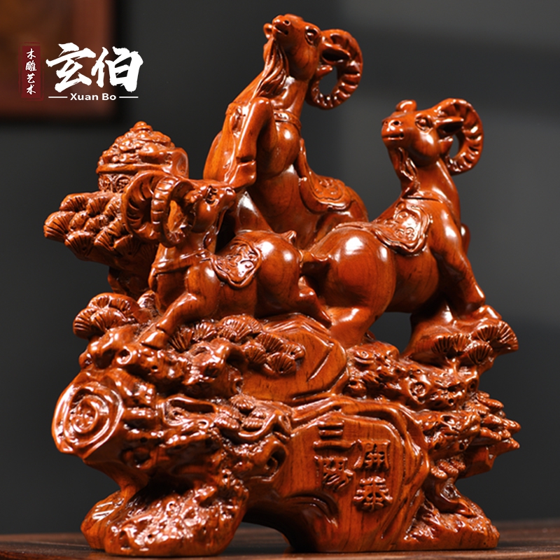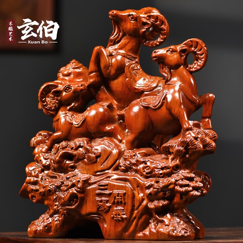 花梨木雕三阳开泰摆件实木生肖羊木质三羊开泰工艺礼品客厅装饰品
