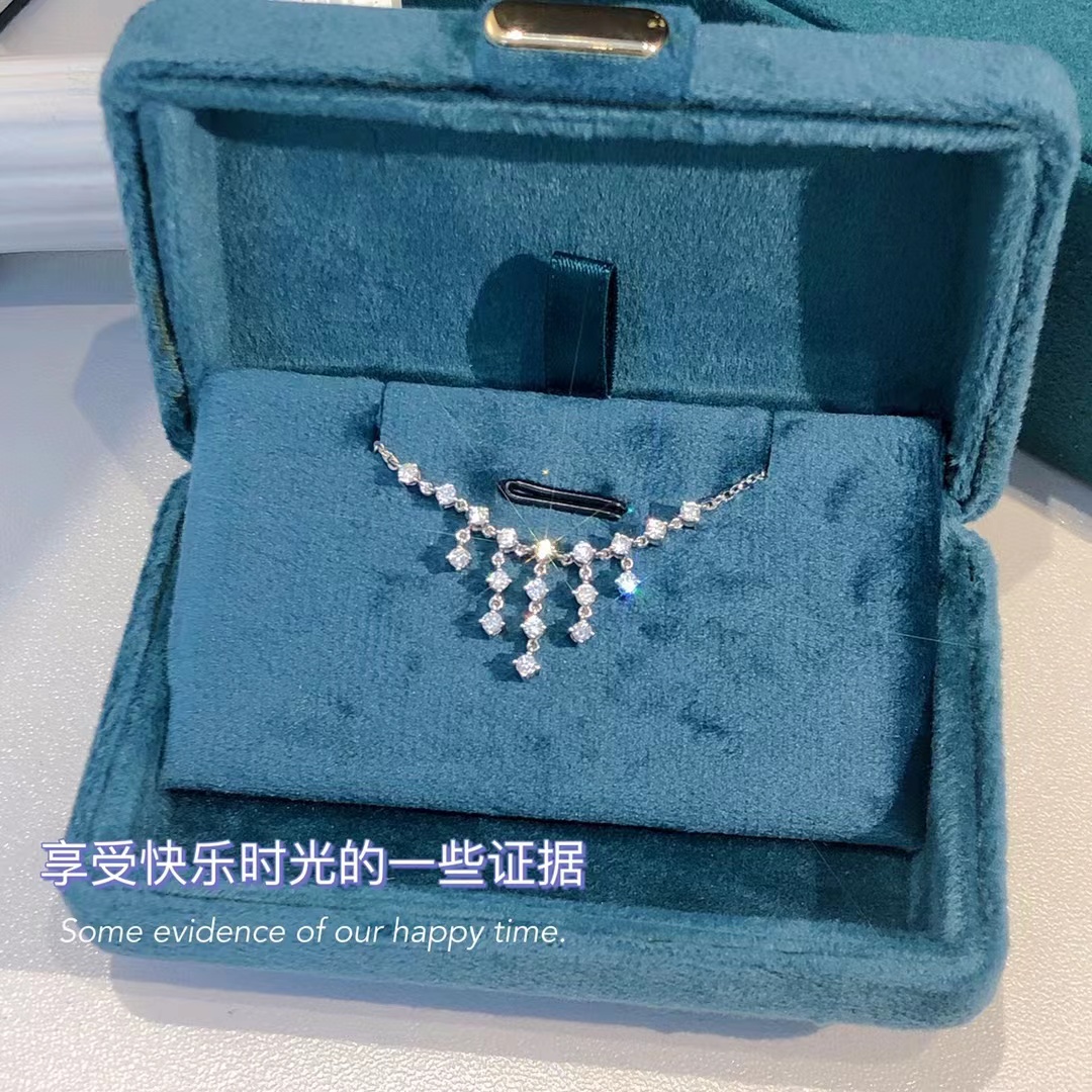 灿若星辰莫桑石项链女款银饰 满天星流苏仿真18K金PT950钻石项链