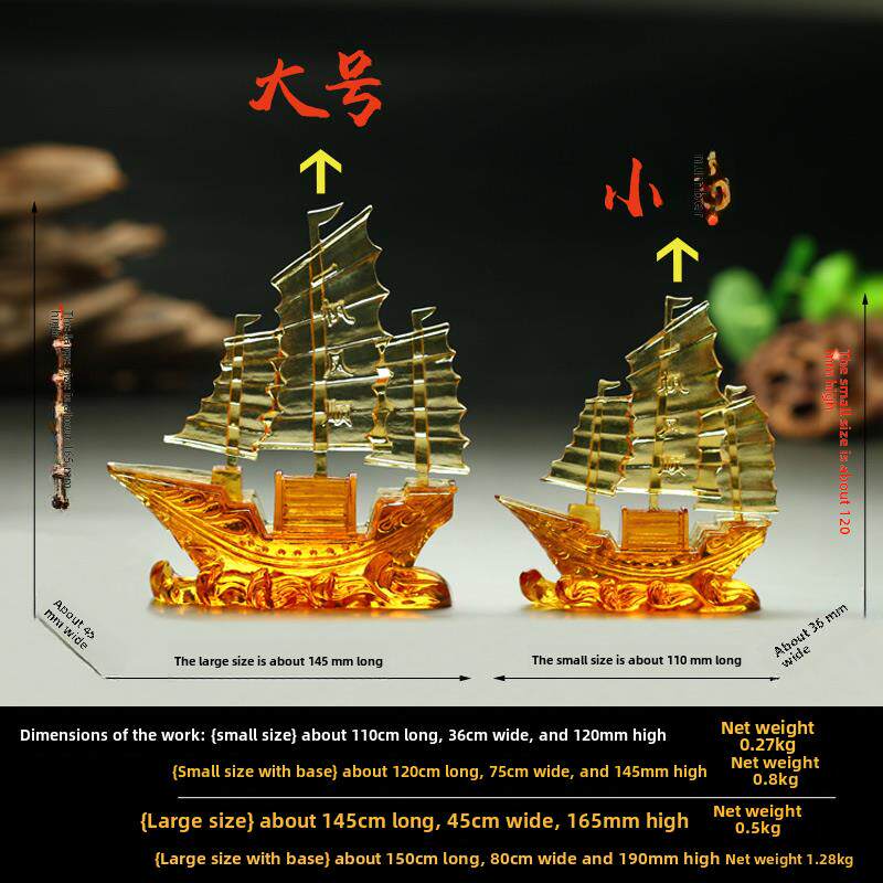 一帆风顺帆船饰品无障碍豪华高端工艺品釉面水晶船办公室家庭客厅