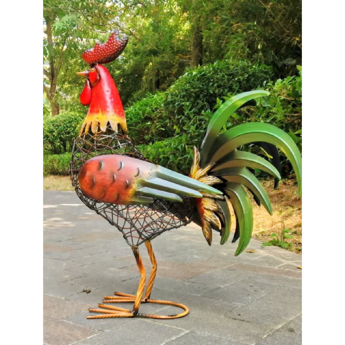 欧美热销田园写实户外园林装饰落地摆件铁艺动物工艺品铁线公鸡