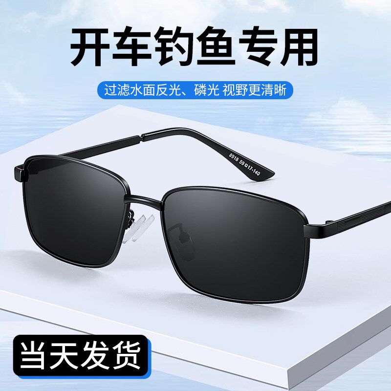 开车驾驶专用偏光镜2024新款男士墨镜变色级感太阳眼镜方形眼睛