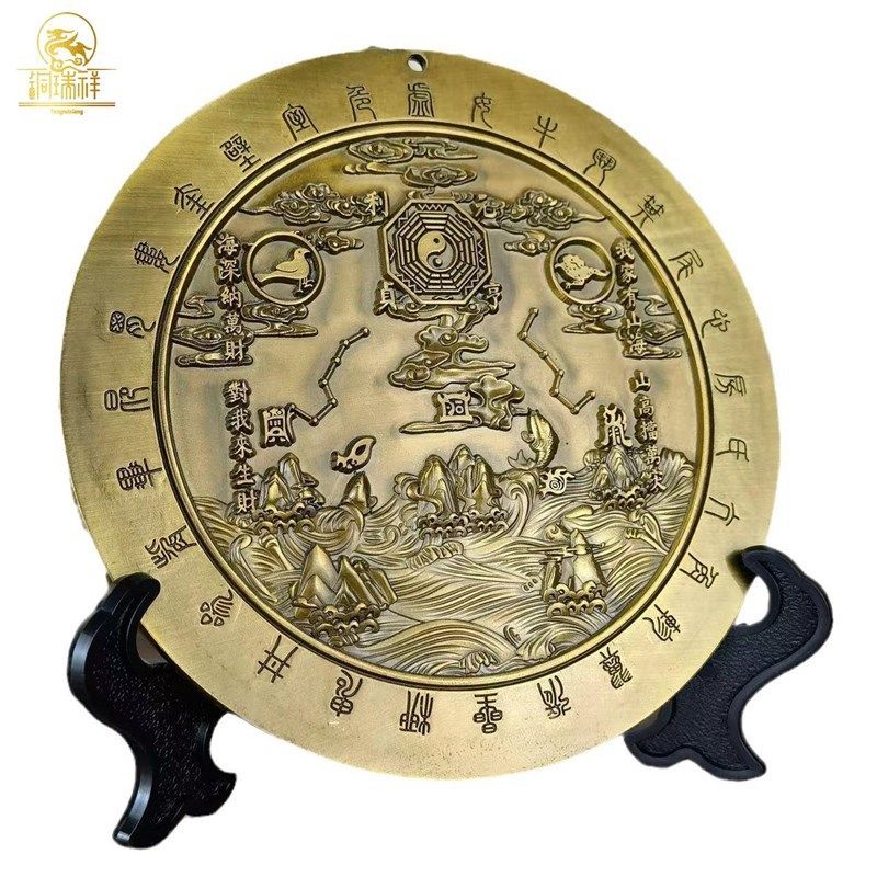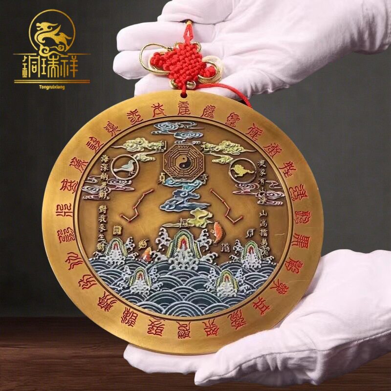 铜瑞祥纯黄铜山海镇挂件彩绘八卦图摆件室内外户外玄关路冲补角