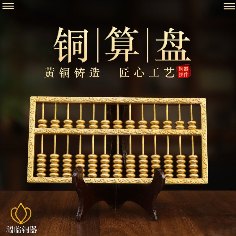 纯黄铜算盘d13档158柱创意摆件公司办公室桌面居家定制铜实心算盘