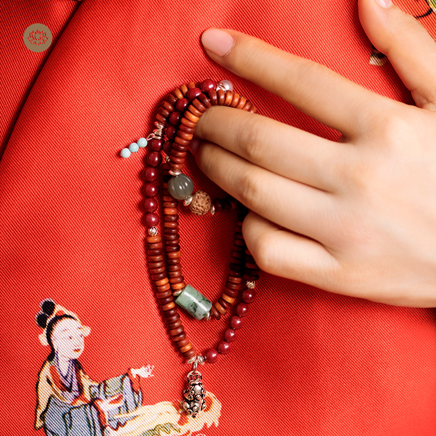 梅朵文创 朱砂天然碧玉翡翠绿松石手链手串精致闺蜜礼物