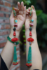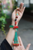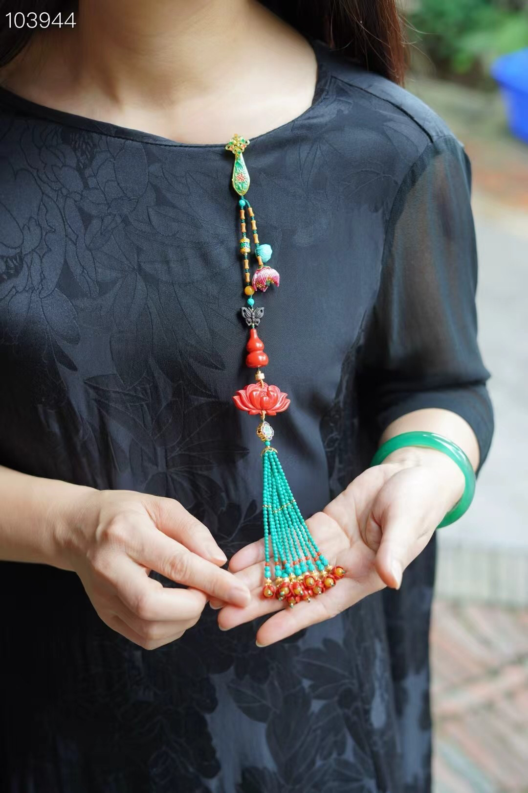 精品朱砂红莲压襟挂件原创设计手工编制松石朱砂葫芦莲花莲蓬配饰