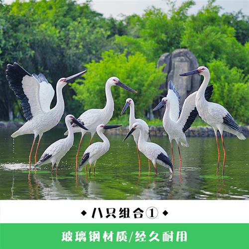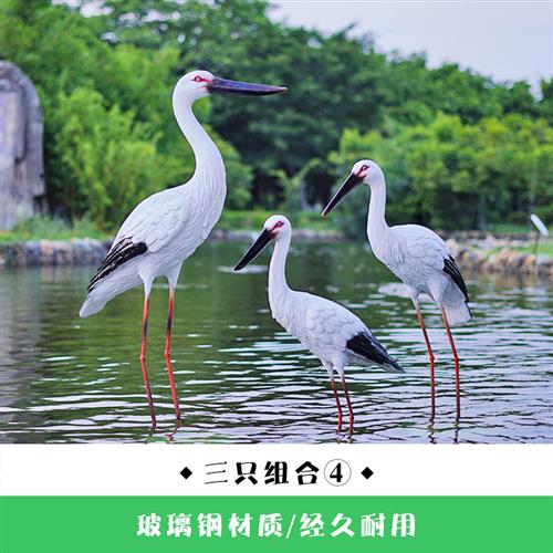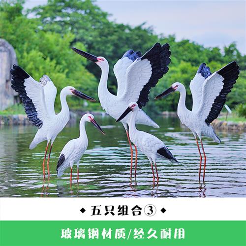 仿真白鹳雕塑水池塘庭院装饰户外仙鹤摆件玻璃钢园林景观白鹭模型