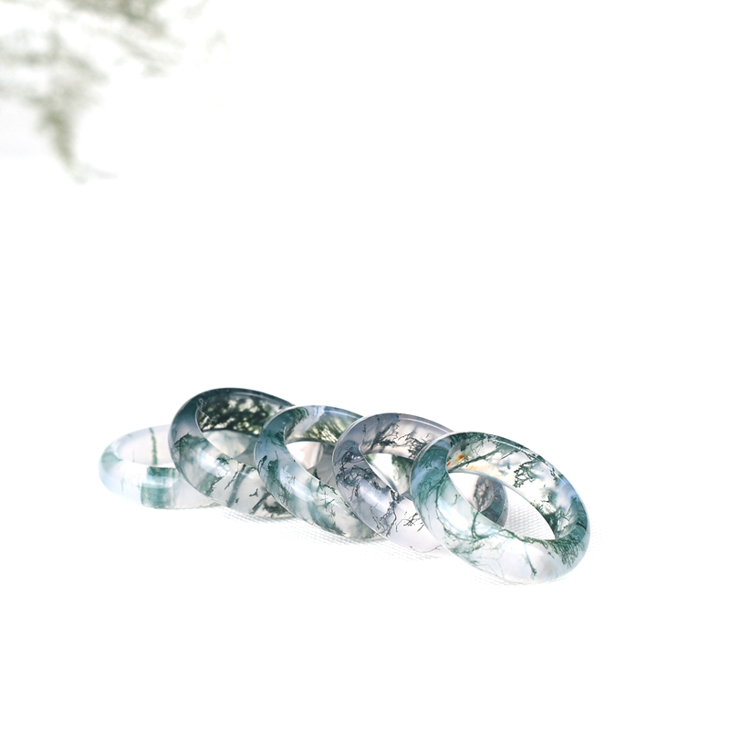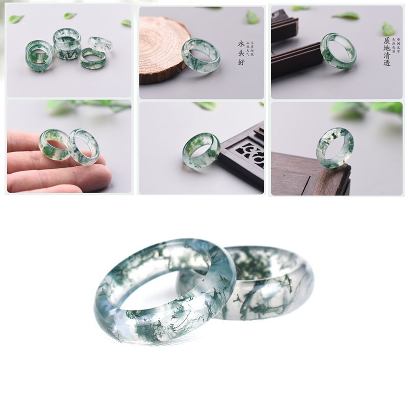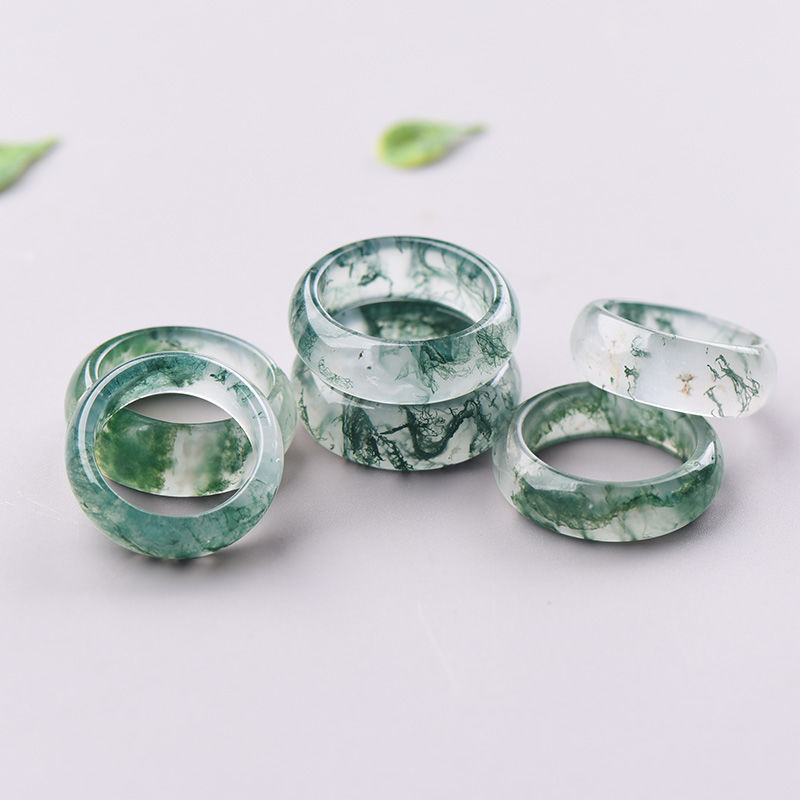 天然水草玛瑙戒指冰种飘花玉髓指环尾戒复古精品玛瑙苔藓男女戒指