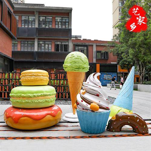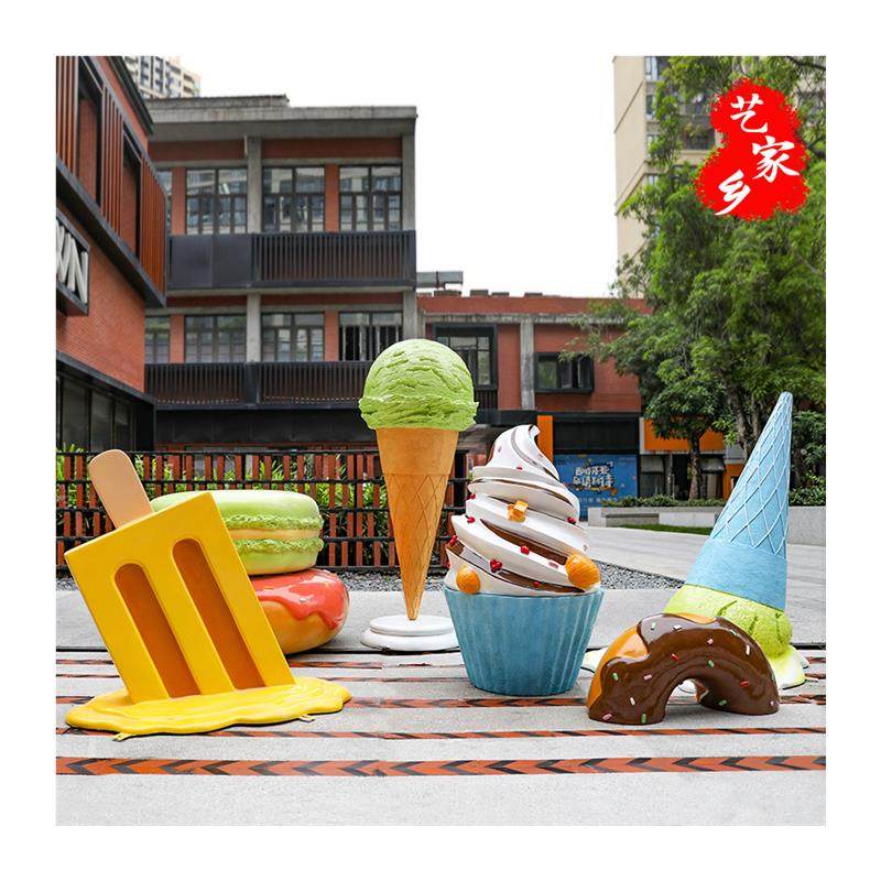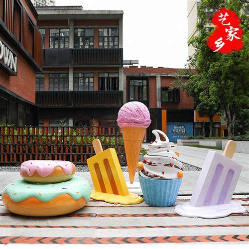 网红甜品店装饰摆件仿真冰淇淋雪糕商场甜甜圈大型玻璃钢雕塑模型